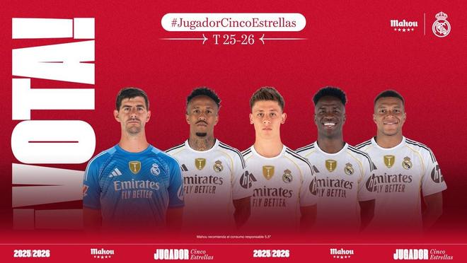官方消息,皇家马德里11月最佳球员候选名单公布,姆巴佩领衔,维尼修斯、居莱尔等人在列。